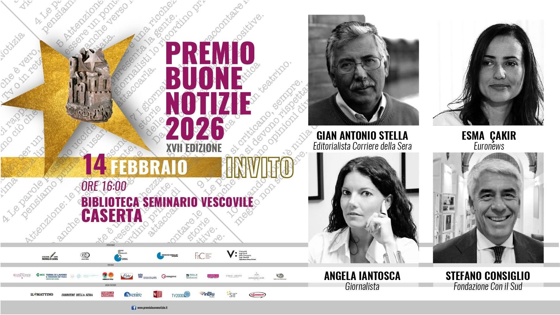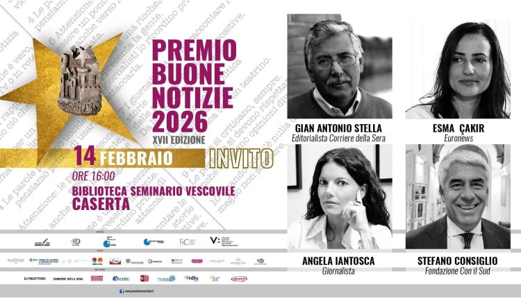 CASERTA – Torna a Caserta il prestigioso «Premio Buone Notizie», l’unico riconoscimento in Italia dedicato all’informazione che non si limita a narrare la cronaca, ma si impegna a raccontare la “normalità positiva” della società e a suggerire soluzioni concrete ai problemi del nostro tempo. Giunto alla sua diciassettesima edizione, il Premio trasforma ancora una volta la città nel fulcro nazionale del giornalismo di qualità.