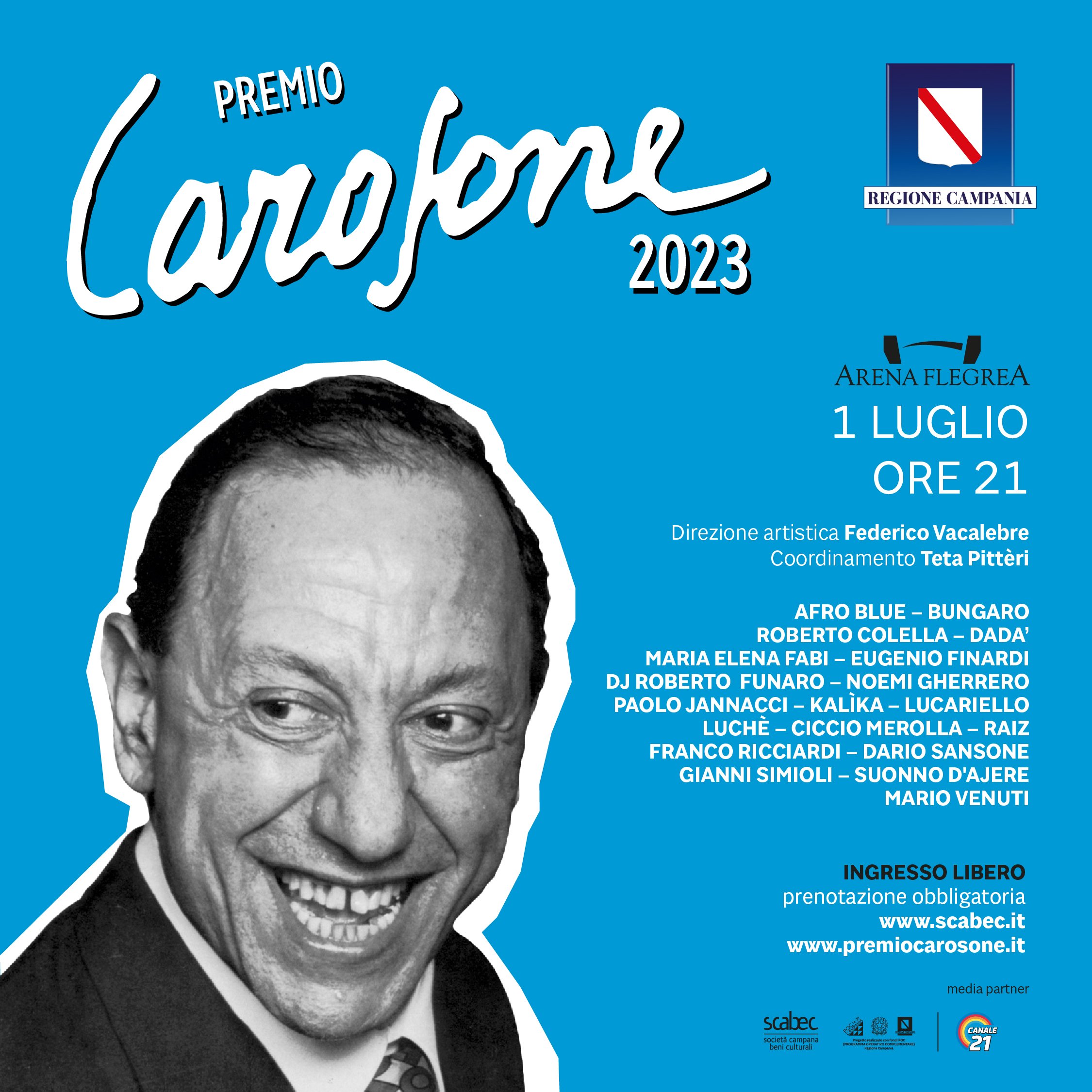 Ideato e curato nella direzione artistica da Federico Vacalebre, giornalista e biografo ufficiale di Renato Carosone, il Premio Carosone 2023 è finanziato dalla Regione Campania (POC 2014-2020), prodotto e promosso dalla Scabec con Teta Pitteri.