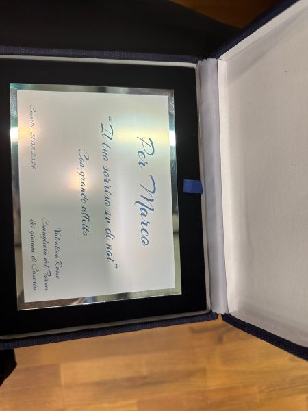 “Ho colto l’occasione per manifestare l’affetto e la stima nei confronti della famiglia Dongu e ricordare Marco con una targa sulla quale ho fatto incidere una frase rappresentativa di ciò che era la sua vera essenza ‘Il tuo sorriso su di noi’” con queste parole la Consigliera Russo ha voluto omaggiare la famiglia del giovane prematuramente scomparso in circostanze purtroppo tragiche.