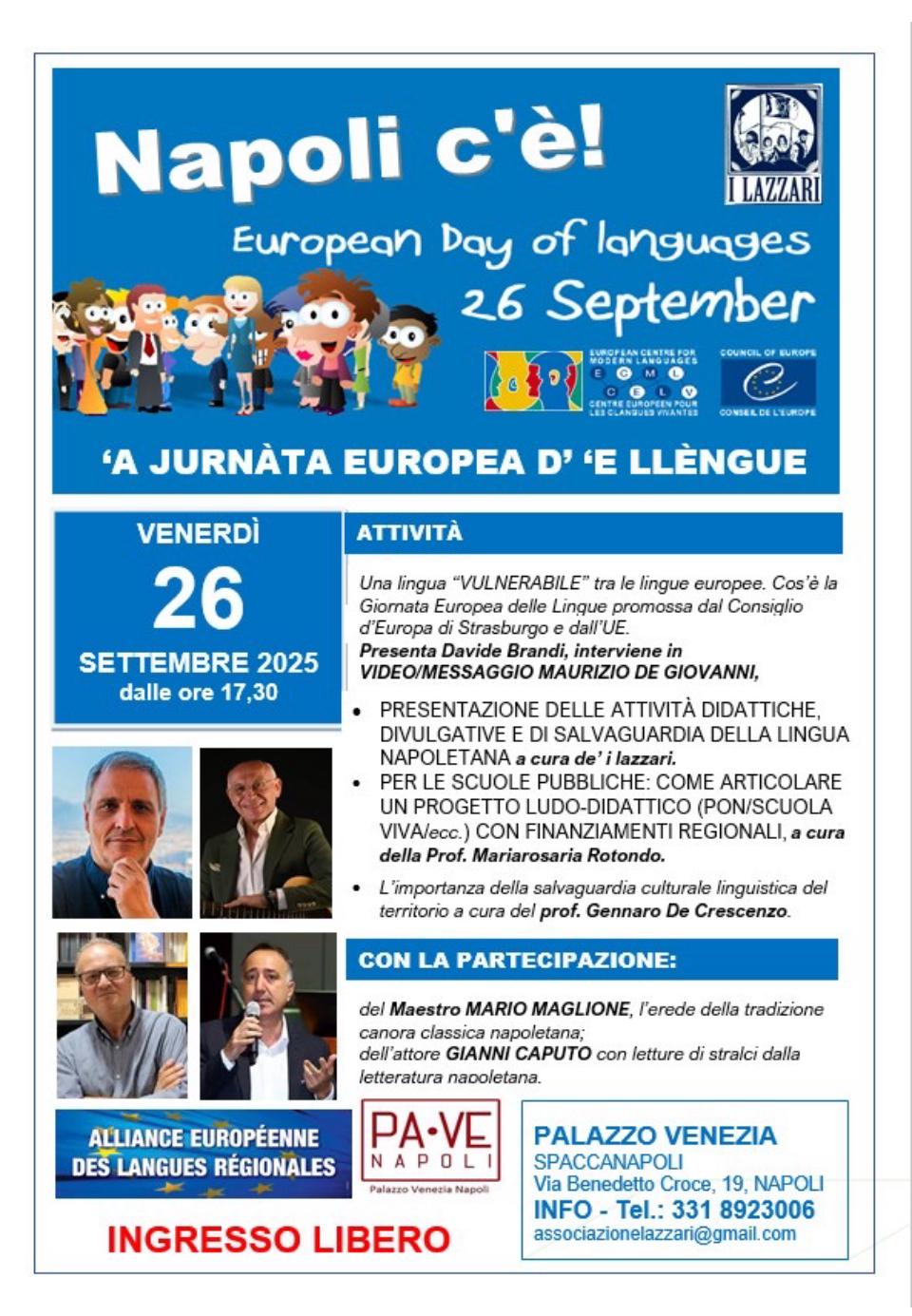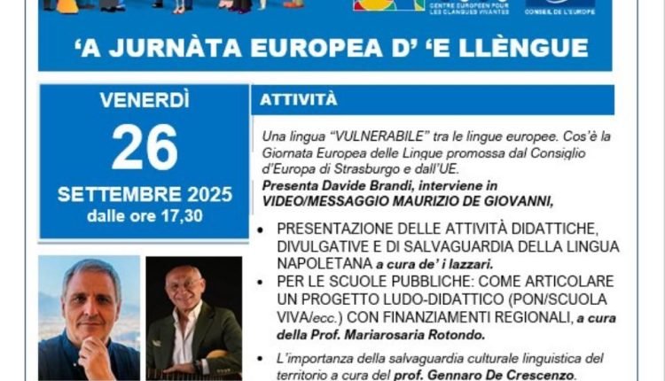 Il 26 settembre 2025 sarà la *”GIORNATA EUROPEA DELLE LINGUE”*, promossa dal Consiglio d’Europa di Strasburgo e dall’Unione Europea.