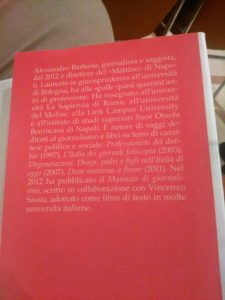 Prende la parola Barbano l’autore del libro che descrive la sua esperienza, la storia, da dove parte la voglia di scrivere, dopo i ringraziamenti di rito nei confronti delle autorità ed i presenti iniza così il suo monologo: ‘quando si scrive un libro bisogna essere umili, la paura che nessuno lo legga ci sta, da direttore del giornale definisco/paragono coloro che lavorano nel Mattino come quelli che fanno il pane tutti giorni, finiamo a mezzanotte però grazie ad un editore mi sono entusiasmato e sono stato convinto a pubblicare il saggio, nonostante le mie resistenze inziali, il titolo era il sottotitolo, semplicemente, il tradimento della libertà una voluta ambiguità, quando l’ho proposto a Mondadori ero un sig. nessuno nonostante il mio ruolo nel giornale. Un saggio è difficile desti interesse, dopo le prime 35/40 pag. il direttore di Mondadori ha proposto di chiamarlo troppi diritti, e mi è piaciuto come titolo, il libro racconta una realtà complessa è alla III edizione (ho scritto sei libri!) non era mio interesse andare controcorrente, chi lo fa intercetta il peggior conformismo, il volume, racconta di un moderatismo integrale, una inguaribile fiudcia nella democrazia, abbiamo azzerato la violenza simbolica della democrazia, si parla anche delle vicissitudini di Giuliano Amato, figlio di operai affermatosi in America, il quale ha ricoperto ruoli politici importanti e lui stesso dichiarò di sè, io non sono un privilegiato vorrei che i giovani mi guardassero come esempio da seguire. Oggi ci sta un’estetica della miserabilità, la sciatteria dei politci in jeans che si recano al Parlamento esibizione di una normalità che di normale non ha nulla, la politica è l’arte più nobile ed esprime il prestigio della casta.