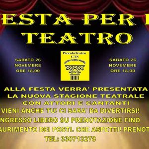 Caserta – Sabato 26 novembre alle ore 18, in occasione della Festa Per Il Teatro che si terrà presso la nostra sede di via Louis Pasteur 6, ci sarà la conferenza stampa per la presentazione della ventiduesima stagione teatrale, oltre che della presentazione della Scuola di Teatro, dei corsi di dizione e quelli di chitarra classica. La partecipazione è consentita a tutti fino ad esaurimento dei posti. Modereranno il critico d’Arte e Assessore alla Cultura del Comune di Caserta dr. Enzo Battarra, il professore Enzo Elefante (docente all’Accademia di Belle Arti di Napoli), l’attore e docente teatrale Antonio Ferrante, e il nostro direttore artistico Angelo Bove; Mentre dal teatro Comunale di Cittanova (RC) nel corso della 28esima edizione PREMIO MIA MARTINI, ci sarà il collegamento via web con Lucia Cassini, poliedrica cantante/attrice che con il suo spettacolo LUCI’ DEL VARIETE’ sarà presente al Cts il 18 e 19 febbraio prossimo. Inoltre presenzieranno diverse compagnie teatrali e artisti inseriti in questa nuova stagione teatrale.
