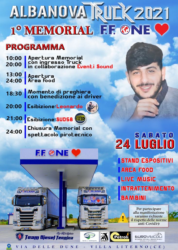 Albanova Truck 2021: sabato 24 luglio il primo memorial F.F. One, in ricordo di Francesco Fontana.