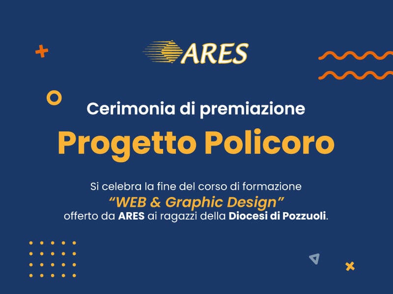 ARES, Associazione di Ricerca e Sviluppo, sempre attenta alle esigenze del territorio, ha deciso di abbracciare gli obiettivi del Progetto Policoro. La Diocesi di Pozzuoli ha indetto un bando per il rifacimento del logo; ARES, ha per questo offerto ai 25 partecipanti, un corso gratuito di Web & Graphic Design.