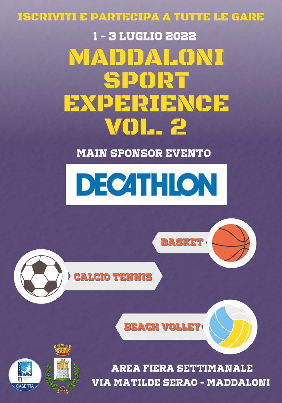 A Maddaloni precisamente nei giorni 1-2-3 luglio si terrà la seconda edizione del Maddaloni Sport Experience, un evento di carattere prettamente sportivo, gestito e curato nei dettagli da Opes Caserta con il presidio del