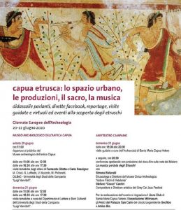 A seguire,ore 20.30,anche per festeggiare la Giornata della Musica, conferenza spettacolo con proiezione del docu-film “Sulle note del Mistero. La musica perduta degli Etruschi” con Simona Rafanelli, Etruscologa, Direttore del Museo civico archeologico “Isidoro Falchi” di Vetulonia e il musicista compositore Stefano “Cocco” Cantini, sassofonista e Direttore artistico del Grey Cat Jazz Festival. Per la realizzazione dell’evento si ringraziano il Lions club di Santa Maria Capua Vetere, l’Associazione Mithraeum,gli “Amici di Palazzo San Carlo”, il circolo di Legambiente Geofilos e Amico Bio.