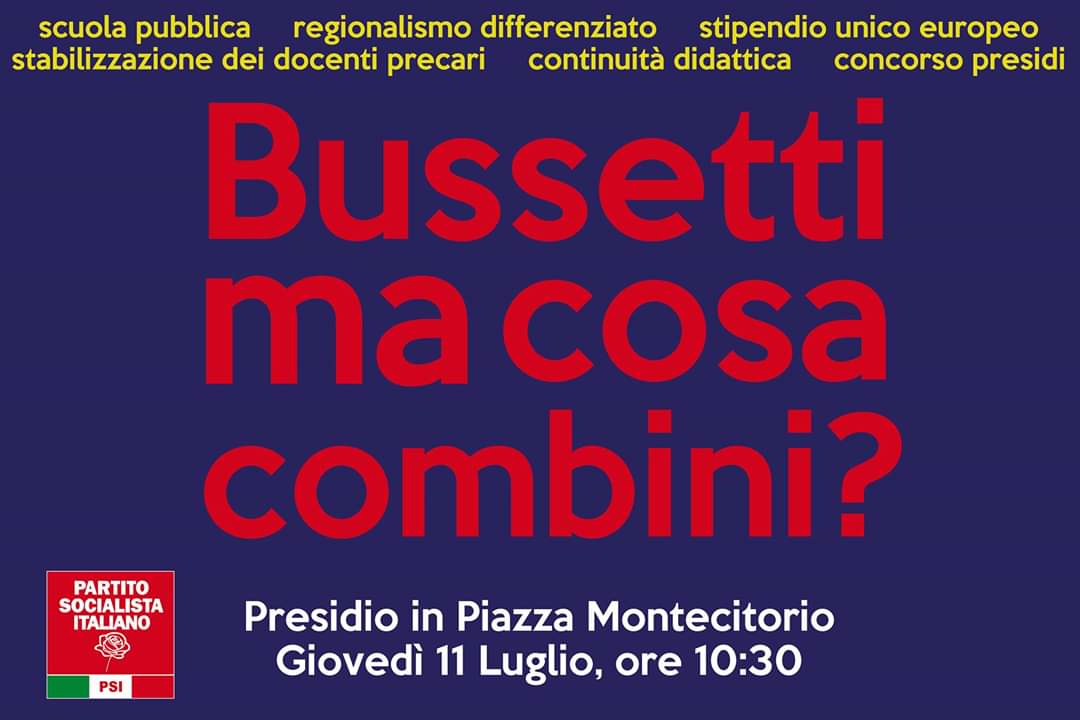CASERTA – “Questo Governo sta giocando sul futuro della scuola e degli insegnanti una partita a scacchi, che metterà presto fuori gioco l’intero sistema dell’istruzione pubblica. Non stabilizza i docenti precari, spinge per avere venti modelli diversi di istruzione a seconda della volontà di ogni Regione, bandisce concorsi irregolari per i dirigenti scolastici, non assicura alcun tipo di continuità didattica. Considerato che per noi socialisti l’istruzione pubblica nazionale è un valore imprescindibile per la formazione degli studenti italiani, abbiamo organizzato per Giovedì 11 luglio, alle ore 10:30, prima della riunione della Direzione Nazionale, un sit-in in piazza Montecitorio” – a riportarlo alla nostra redazione il segretario provinciale e dirigente nazionale del PSI Francesco Brancaccio.