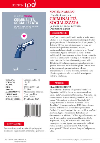 La Iod edizioni annuncia la 30ª pubblicazione della collana Cronisti scalzi, dedicata alla memoria di Giancarlo Siani, dal titolo Criminalità socializzata. Le mafie nei social network. Dai pizzini ai post del giornalista Claudio Cordova.