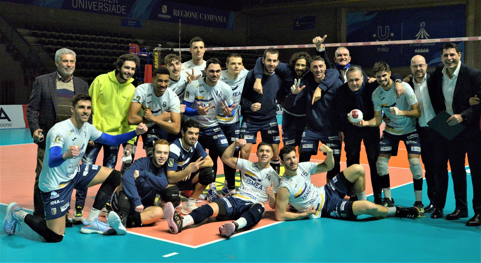 TERZO SET. Inizia con grandissimo equilibrio il terzo parziale con le due squadre che nei primi 10 punti si dividono la ‘posta’. Aversa va avanti di 2 (5-7) ma l’Avimecc non vuole ancora arrendersi e recupera subito il pareggio. Grande pallavolo, intensità negli scambi e grinta da vendere per i due sestetti. Si gioca a viso aperto fino a quando Darmois non spara lontanissimo dalla linea dei 9 metri regalando il 14-16 ai siciliani. L’Academy non è mai doma: alza il muro, fa sentire che vuole a tutti i costi la vittoria e piazza un break importante che permette di trovare il sorpasso (19-18) costringendo il tecnico di Modica a richiamare i suoi ragazzi in panchina. Bonina chiude uno scambio lunghissimo e poi Darmois silura la difesa avversaria dai 3 metri chiudendo il 21-18. E secondo time-out per gli ospiti nel giro di 2 minuti. Battuta di Bonina che viene ricevuta male, il pallone torna nella metà campo aversana e Fortes di prima intenzione non può sbagliare per il 24-20. Ben 4 match point. Due vengono annullati e coach Tomasello ferma tutto. Al ritorno in campo ace di Raso e 24-23. Poi errore di ricezione di Darmois e si torna in parità. Si va ai vantaggi. Martinez spara out e Aversa vince 3-0 col punteggio di 26-24 (la conferma anche dal videocheck). Si può far partire la festa.