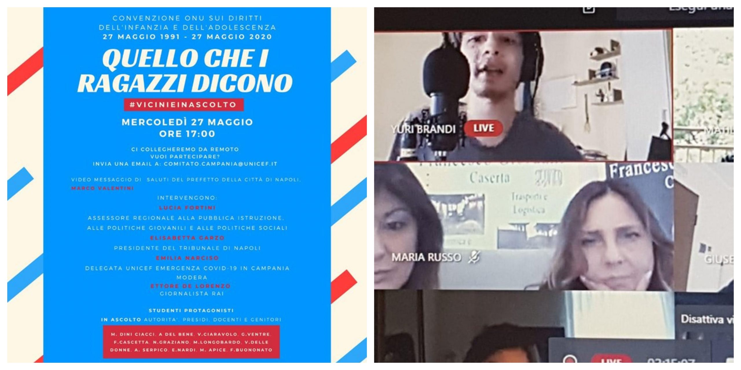 Caserta. Il Giordani con i suoi studenti in prima linea questo pomeriggio alle ore 17 .00 il webinar dell’Unicef sul tema: “Quello che i ragazzi dicono” #vicinieinascolto”