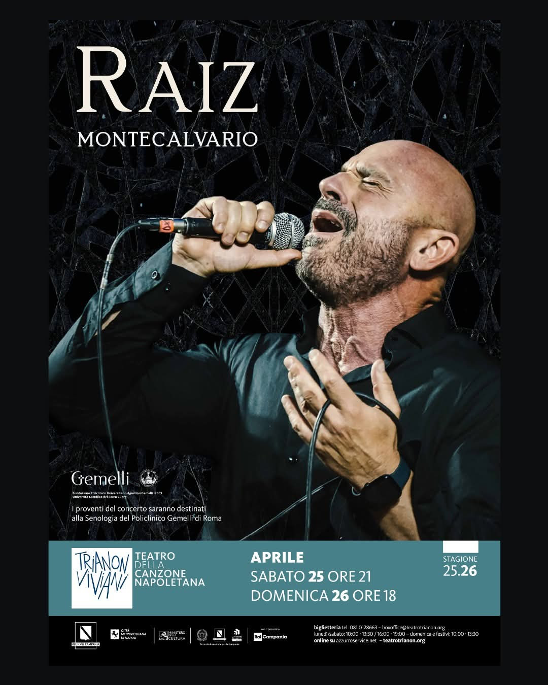 C’è una voce che più di ogni altra sa raccontare il battito di Napoli, capace di restare fedele alle proprie radici pur parlando le lingue del mondo. Il 25 e 26 aprile, il palco del Trianon Viviani ospiterà un evento unico: RAIZ in “Montecalvario”.