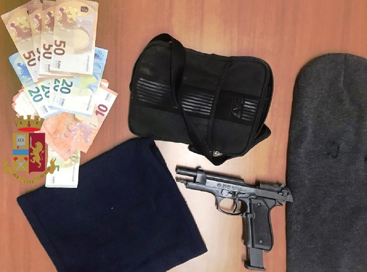 Il complice, poco dopo, si è presentato presso gli uffici del commissariato e nel suo marsupio è stata trovata la pistola a salve priva del tappo rosso utilizzata per perpetrare la rapina nonché diversi attrezzi atti allo scasso.
