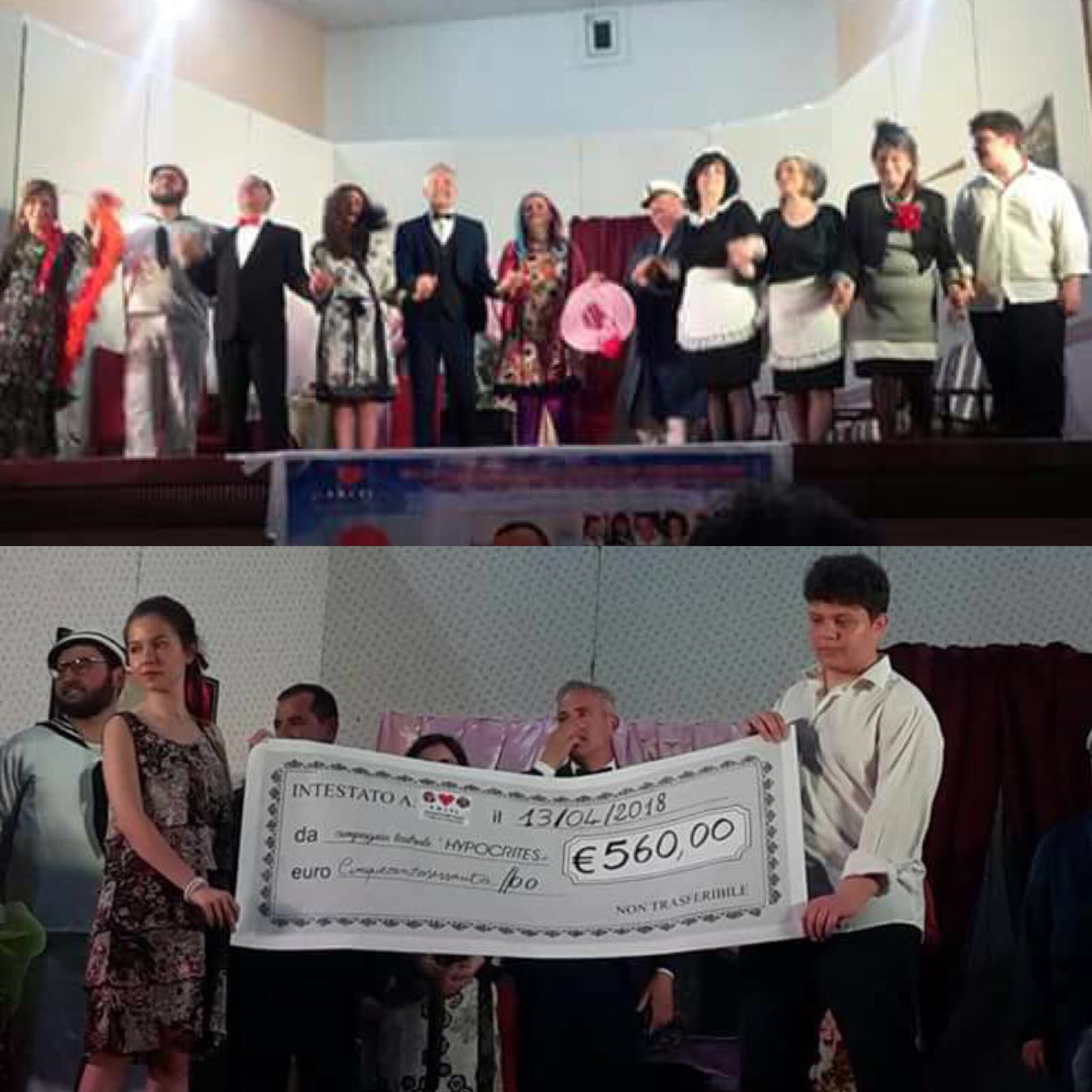“560 euro di ringraziamenti alla Hypocrates che ha portato sul palcoscenico questa rappresentazione teatrale ricca di simpatia e di qualità – dice Elena Ronzullo, presidente dell’associazione ‘Mamme Coraggio’ con sede in via Caracas, 20 in Trentola Ducenta -.