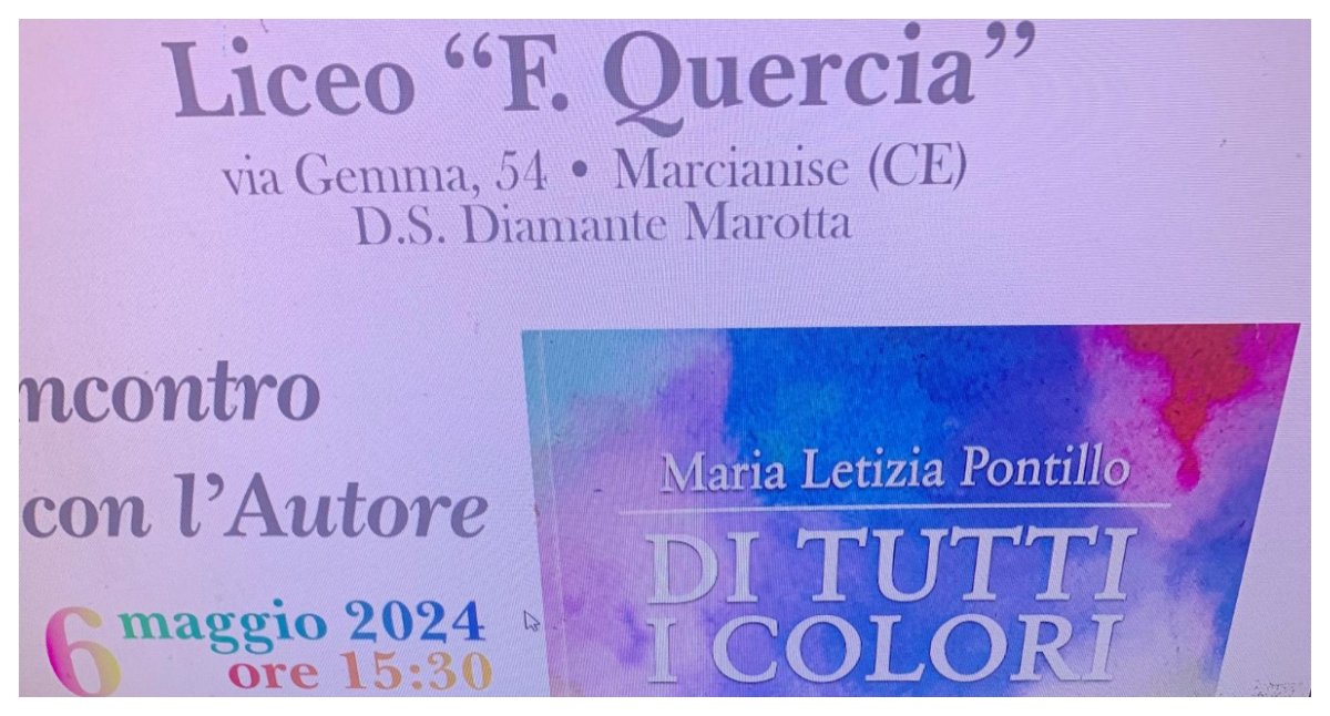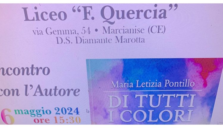 Nella giornata di lunedì 6 maggio, infatti, a partire dalle ore 15.30. nell’Aula Magna del prestigioso liceo , sara’ presentato il libro ” Di tutti i colori” della scrittrice Maria Letizia Pontillo edito da Abra Books Narrativa-.