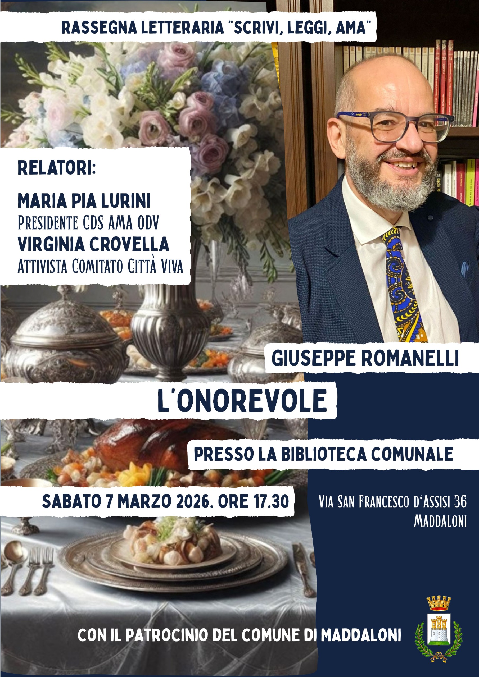Protagonista dell’incontro sarà lo scrittore Giuseppe Romanelli, che presenterà il suo libro L’Onorevole. L’evento si svolgerà nella sede della biblioteca in via San Francesco d’Assisi 36, nel cuore della città, con il patrocinio del Comune di Maddaloni.