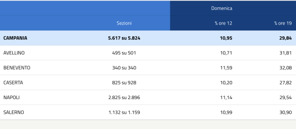 È in corso il voto per il Referendum costituzionale 2026 sulla Giustizia. I seggi saranno aperti anche nella giornata di domani, lunedì 23 marzo, dalle 7 alle 15. Gli aventi diritto al voto, in base ai dati del Viminale, sono 51.424.729, di cui 5.477.619 all’estero. Il referendum è di tipo confermativo: non richiede il superamento del quorum. Ecco i dati in Campania, suddivisi per provincia, della giornata del 22 marzo: