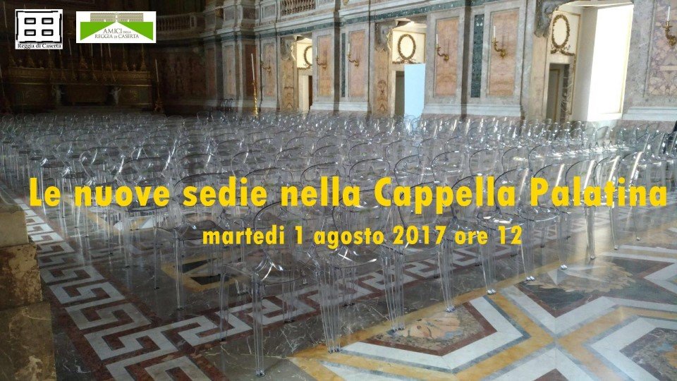 REGGIA DI CASERTA. Domani 1 agosto 2017 alle ore 12 il Direttore della Reggia Mauro Felicori e il Presidente dell’Associazione Amici della Reggia di Caserta Paolo Provitera, presenteranno le nuove sedie che sono state messe a disposizione della Direzione del Complesso vanvitelliano per le attività che si terranno nella Cappella Palatina.