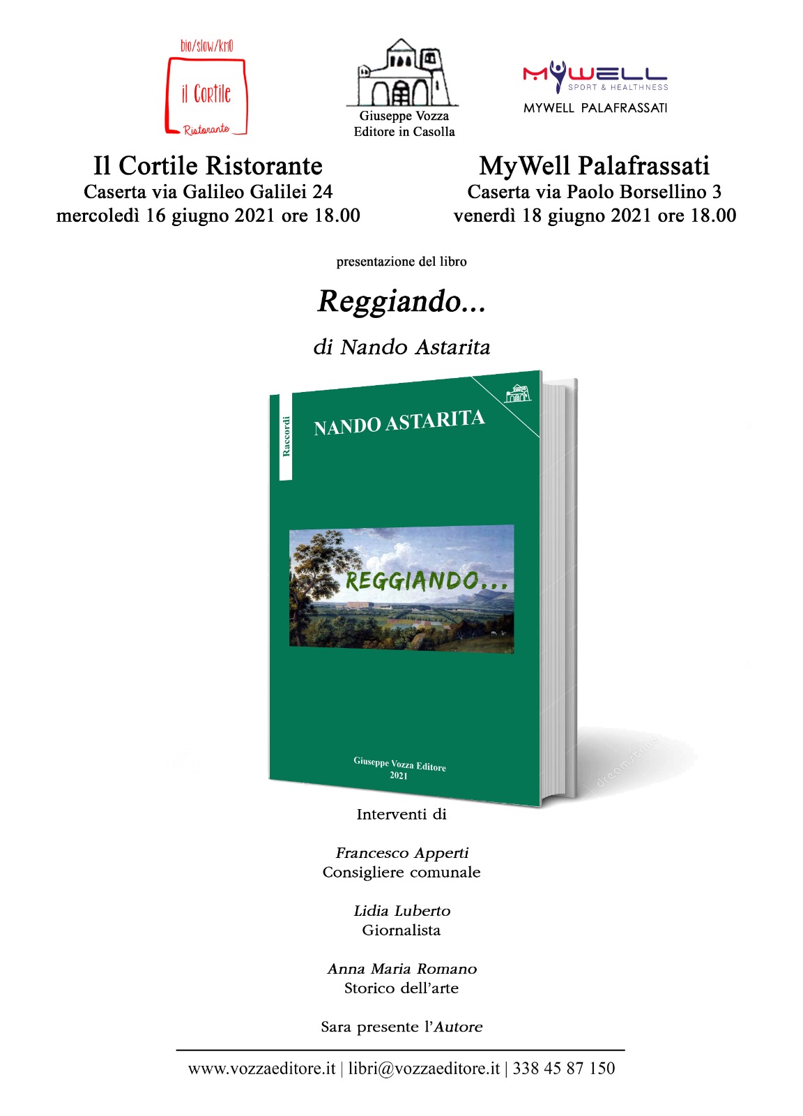 Caserta. Questa sera alle 18.00 nella centralissima via Galileo Galilei di Caserta, nel ristorante “Il Cortile” vi sarà la presentazione del nuovo libro di Nando Astarita dall’emblematico titolo Reggiando…, pubblicato da Giuseppe Vozza Editore.