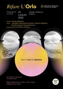 Pubblichiamo il comunicato curato della nostra giornalista Lucia Grimaldi Bisaccia (AV) – Portare l’arte nei piccoli centri, portare la bellezza, perché attraverso l’arte ci si può incantare di nuovo, si può ritrovare il valore della sacralità e si può auspicare ad una temporanea salvezza. Questo è il senso delle parole con cui Franco Arminio, giornalista, poeta e paesologo presenta RIFARE L’ORLO (sta. e mo. del plasma), collezione di arte contemporanea che sarà esposta nel castello ducale della sua Bisaccia dal 23 luglio al 20 agosto.