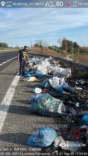 CASERTA – Ancora rifiuti abbandonati lungo le strade dell’agro aversano. Nel tardo pomeriggio del 7 settembre 2025, le Guardie del WWF hanno documentato l’ennesimo episodio di sversamenti illeciti tra Lusciano (CE) e Giugliano in Campania (NA), lungo la superstrada che collega Aversa sud con Giugliano e Melito di Napoli.