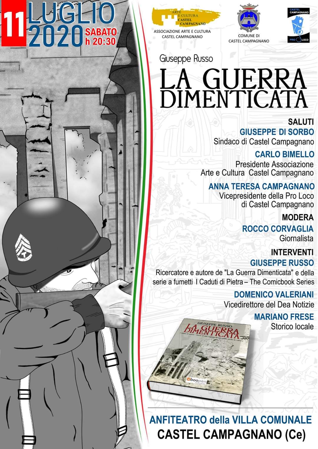 Dopo il tremendo lockdown dovuto al coronavirus, cui esortiamo comunque a fare attenzione, la cultura sta pian piano ripartendo. L’estate, tra l’altro, sta favorendo una maggiore socialità in sicurezza all’aperto, per cui giornalisti, scrittori, artisti e tanti professionisti della cultura hanno deciso con fiducia di provare a riconquistare almeno una parte della perduta normalità. Grazie all’ organizzazione dell’Associazione Arte e Cultura Castel Campagnano, come pure all’attenzione dell’Amministrazione comunale e alla stessa Pro Loco di Castel Campagnano, sabato prossimo alle ore 20:30, nella splendida e sicura cornice dell’Anfiteatro della Villa Comunale, il noto giornalista Giuseppe Russo, autore di importanti ricerche storiche condensate nella sua trilogia “I Caduti di Pietra”, che a fine anno si concluderà con il nuovo libro “Il Primo Fronte”, ci parlerà della Seconda guerra mondiale attraverso l’universale e affascinante linguaggio del mixed comics e attraverso la particolare e affascinante prospettiva dei beni culturali colpiti e occupati durante il periodo bellico.