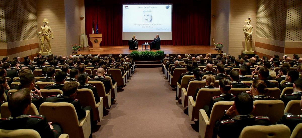 Venerdì sera, 26 aprile 2019, presso la Scuola Ufficiali Carabinieri di Roma, Rita DALLA CHIESA ha presentato con Massimo Giletti il suo libro “Mi salvo da sola” (ed. Mondadori). Lo ha fatto alla presenza dei vertici istituzionali e di una vasta platea in cui spiccavano i giovani Ufficiali frequentatori dell’istituto.