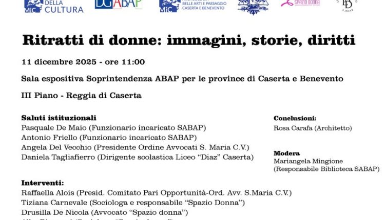 Al terzo piano della Reggia di Caserta, alla presenza gli studenti del Liceo “Armando Diaz”, si parlerà dell’impegno delle donne come motore di cambiamento, protagoniste di pratiche di cura, di mediazione, di educazione, di difesa dei diritti e di tutela; un impegno finalizzato al progresso sociale ma anche alla costruzione di spazi sicuri – familiari, sociali e territoriali – dove la violenza non trova mai terreno fertile. Non solo il 25 novembre ma tutti i giorni si promuovono occasioni di consapevolezza e di richiamo ad un ruolo attivo da parte di tutti e di tutte; dunque l’iniziativa “Ritratti di donne: immagini, storie, diritti” conferma il ruolo di ponte dei presenti nell’attuare e nel tramandare politiche concrete e solidali.