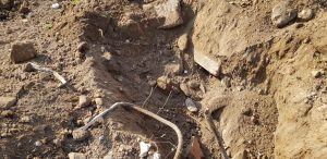 la presenza di ulteriori rifiuti interrati della stessa tipologia di quelli già visibili in superfice (inerti da demolizione, mattoni forati, mattoni in tufo, blocchi di cemento comprensivi di armatura in ferro, canaline in plastica tipica dell’impiantistica elettrica, tubi di plastica ecc.).