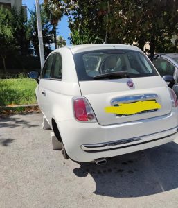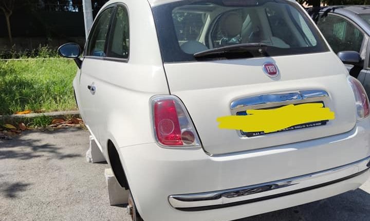 SAN NICOLA LA STRADA – “Meno male che San Nicola c’è”. Potrebbe essere questo il “refrain”, il “ritornello” al quale ogni corrispondente di una qualsiasi testa giornalista dovrebbe essere grato. Infatti, la Città di San Nicola la Strada è “un pozzo senza fine” per quanto riguarda “la cronaca nera”. Ma, vi posso assicurare, che non è affatto semplice per un cronista per giunta residente in San Nicola la Strada, raccontare questo continuo stillicidio senza essere considerato “un disfattista”, “un non amante della propria Città”, ma, purtroppo debbo raccontare la verità per cercare di smuovere le coscienze di chi governa, di chi è detentore della sicurezza cittadina. All’alba di mercoledì, 27 maggio 2020, un cittadino sannicolese è uscito di casa per recarsi al lavoro e si è imbattuto in una situazione che oramai a San Nicola la Strada è diventata di “routine”: l’asportazione delle 4 ruote di un’auto nuova, in questo caso una FIAT 500 NUOVISSIMA.