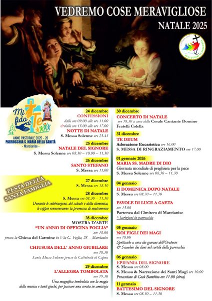 Il 28 sera, invece, alle 18:30 ci sarà Messa Solenne presso la Cattedrale di Capua per la Chiusura dell’Anno Giubilare.