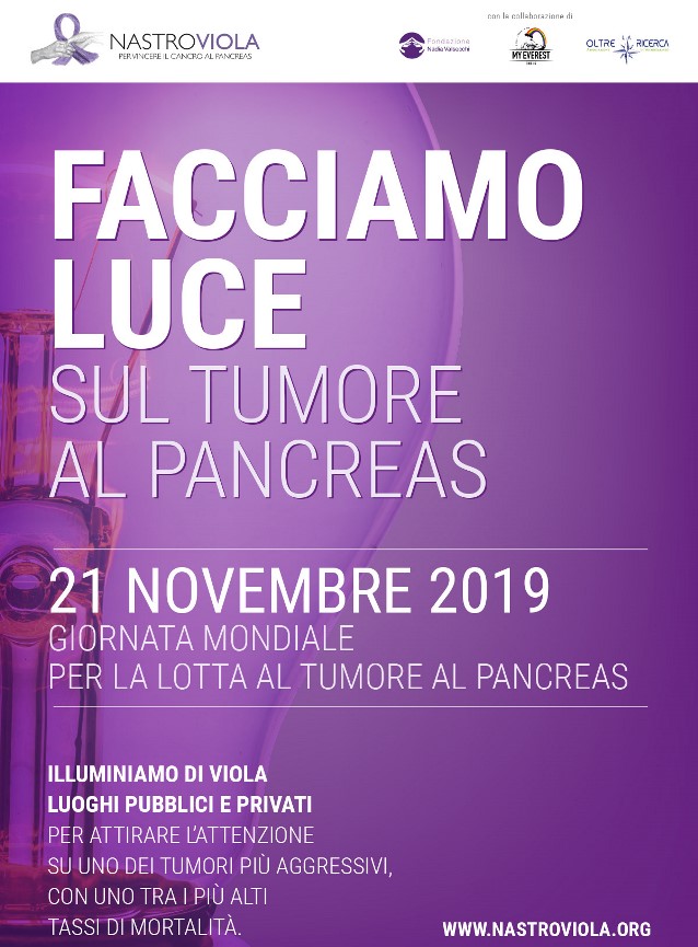 Come ogni anno, l’intero mese di Novembre sarà dedicato alla sensibilizzazione sul tumore al pancreas e in diverse località italiane sono previsti eventi ed iniziative finalizzate alla divulgazione di informazioni su questa patologia. Per maggiori informazioni sulla Associazione Nastro Viola Onlus: www.nastroviola.org.