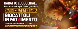 SAN NICOLA LA STRADA – Domenica 5 gennaio 2020, dalle ore 10:00 alle ore 13:00, presso la Villa Comunale “Santa Maria delle Grazie”, si è tenuta l’evento dal titolo: “Giocattoli in MoVimento”, l’iniziativa solidale della sezione di San Nicola la Strada del MoVimento 5 Stelle che fa giocare i bambini: i cittadini hanno avuto l’opportunità di portare i bambini a giocare ed allo stesso tempo fare del bene.