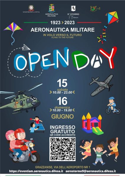Sabato 15 (dalle 10.00 alle 23.00) Domenica 16 Giugno (dalle 10.00 alle 19.00) nel sedime del 9° Stormo ‘F. Baracca’ di Grazzanise, si terrà l’Open Day ‘100+1′, un 2 giorni di assoluto divertimento con ingresso libero e assolutamente gratuito e parcheggio interno. “Ti aspettiamo con entusiasmo per condividere due giorni travolgenti con l’ *Aeronautica Militare ed il 9° Stormo”, l’annuncio da parte del personale in forza allo Stormo.