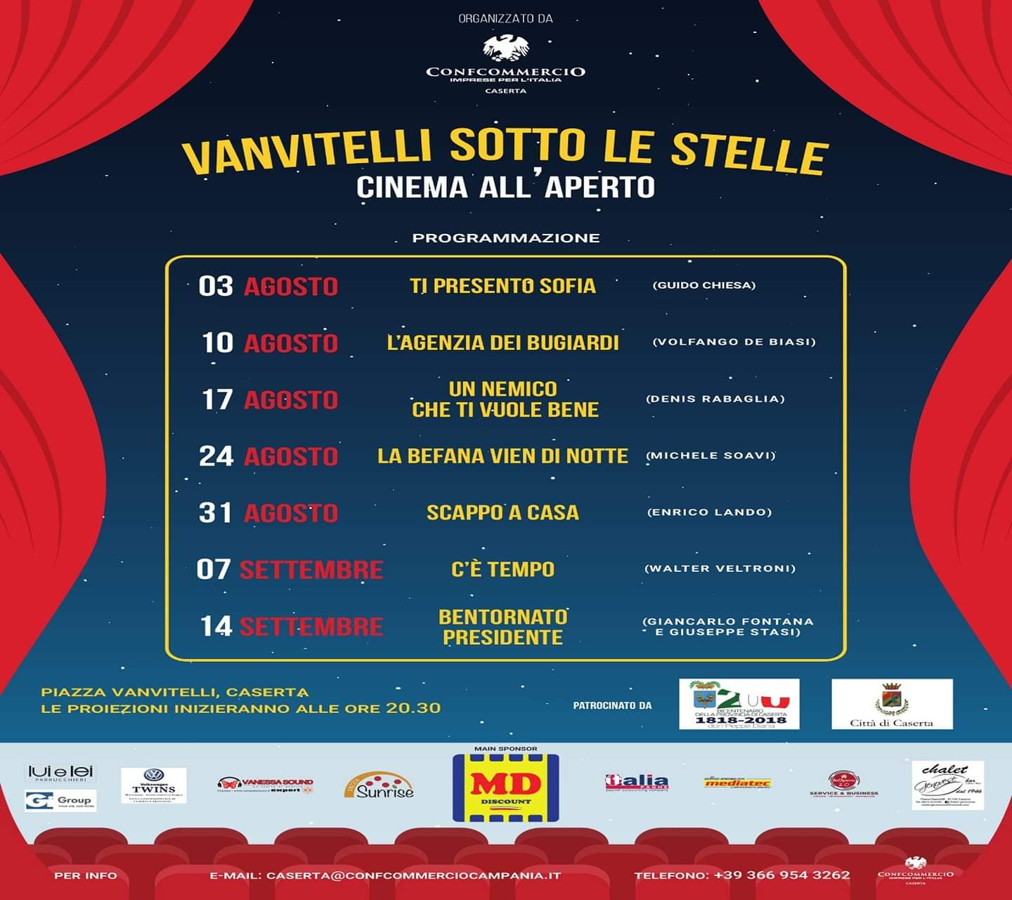Sabato 3 agosto inizia ufficialmente la rassegna “Vanvitelli sotto le Stelle” l’ appuntamento con il cinema all’aperto.