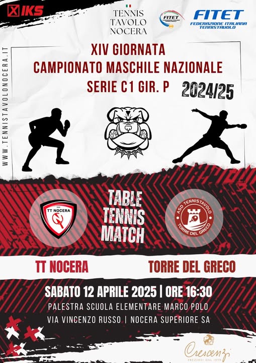 Dopo l’esaltante galoppata fatta di tante meritate vittorie, tra cui l’ultima in ordine di tempo, battendo il Sorrento Sport con il punteggio di 5-2, sabato prossimo, il Tennis tavolo Nocera è atteso dall’appuntamento più sentito, quello che determinerà probabilmente l’epilogo della stagione, con la certificazione della ambita e meritata promozione in serie B. La squadra del presidente Giovanni Landino, affronterà sabato 12 aprile, alle 16,30 nella palestra della scuola elementare Marco Polo in via Vincenzo Russo a Nocera Superiore la squadra del Torre del Greco. Sarà una sfida decisiva visto il parimerito in classifica con la STET Mugnano. La società attende il proprio pubblico, per sostenere in quest’ultima e decisiva gara la squadra, facendogli sentire il calore e l’affetto di tifosi, concittadini e amanti del bel gioco. Alla partita si potrà assistere gratuitamente, ma la società raccomanda di arrivare con almeno 15 minuti di anticipo, rispetto al fischio di inizio gara per poter ricevere i gadget, che sono stati realizzati per l’occasione allo scopo di far sentire ancora di più la passione e l’attaccamento ai Molossi in questa sfida determinante per l’intera stagione sportiva.