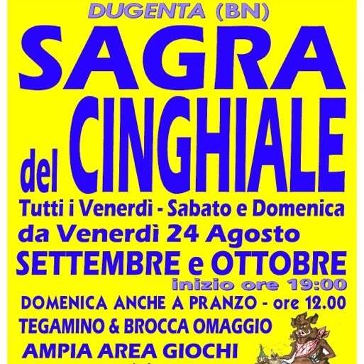 Dugenta, comune della provincia di Benevento, ospiterà dal 24 agosto ogni weekend la sagra del Cinghiale fino ad ottobre.