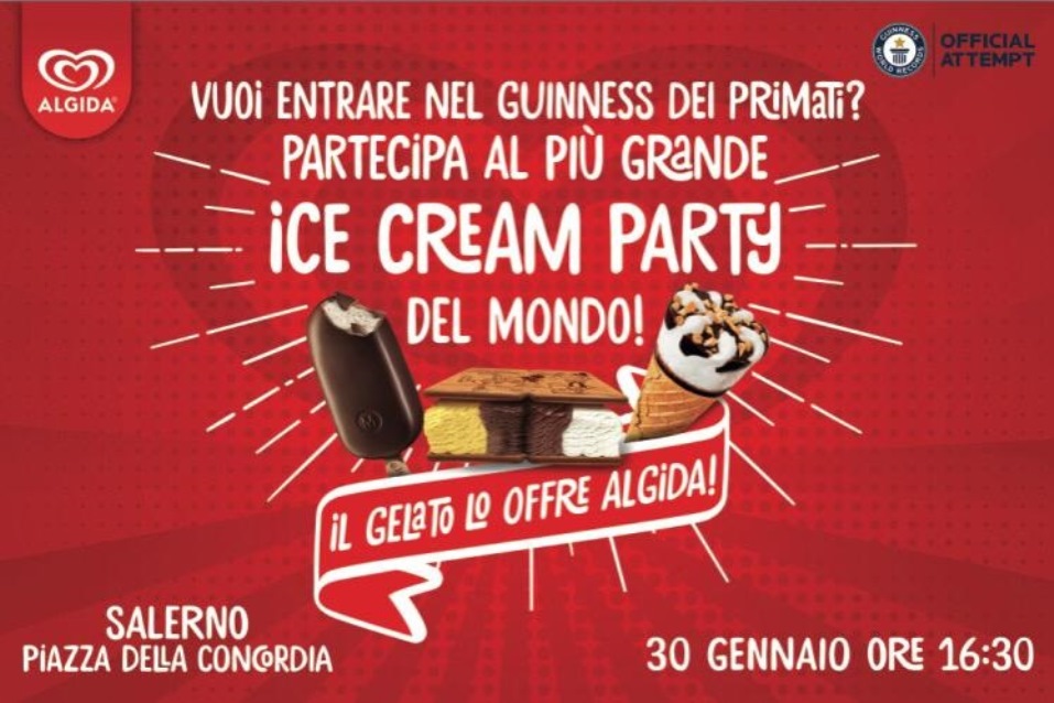 Ma la cosa più interessante e che, in quella occasione, i Salernitani potranno essere protagonisti in prima persona dell’Ice Cream Party, che si preannuncia “il più grande del mondo”. Per stabilirlo senza ombra di smentite, peraltro, non faranno mancare la propria presenza degli esperti. A verificare l’operazione, infatti, ci saranno i giudici del “Guinness World Record”. Nel contesto dell’evento, per la gioia soprattutto dei più piccoli, non potranno mancare neppure i gelati Algida, che saranno offerti gratuitamente a tutte le persone che vorranno prendere parte alla storica manifestazione. La manifestazione conferma la collaborazione tra la Algida e la Michele Fabbrocino Srl, concessionaria per buona parte della provincia di Salerno per la distribuzione dei gelati.