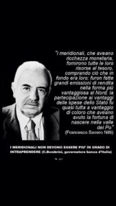 E’ questa la vostra politica per il Sud ? Riteniamo purtroppo di si. Con una marea di parlamentari eletti al Sud, coscienti del fatto che i Piemontesi ci rapinarono di tutto con l’Unità d’Italia, anche questo governo, con governanti del Sud eletti per fare gli interessi del Sud, si interessa prioritariamente di tutto tranne che dei soldi del Sud e per il sud. I correntisti, gli affari e il capitale del Banco di Napoli erano del Sud e serviva per il Sud. Adesso ci aspetteremmo che : 1) venga mantenuto il nome “Banco di Napoli “; 2) vengano fuse almeno tre o quattro banche territoriali per farle diventare “Banco di Napoli” ; 3) venga stabilita Sede legale a Napoli e le venga restituito l’intero patrimonio immobiliare. Diversamente avremo visto salvare : Monte dei Paschi di Siena, Banca Toscana, Banca Etruria, Banca Veneta (e chi più ne ha più ne metta), tutte tranne il Banco di Napoli. Basta parole vuote e basta far finta di nulla oppure interessarsi “prima del Nord”, che si faccia qualcosa che serve per l’onore, la dignità e gli interessi del Sud, non l’elemosina e quattro denari di fondi già spettanti ai Meridionali.” Ancora la Sannino : “Il tesoro di San Gennaro, che è del popolo napoletano, si trova nel Caveau del Banco di Napoli, a Mezzocannone ed è circondato dall’acqua per evitare i furti attraverso le fogne, in tal modo è stato da sempre al sicuro, ma non abbiamo calcolato gli speculatori del Nord e la banca intesa San Paolo di Torino, infatti il caveau può dal 26 novembre 2018 essere messo in vendita, questo comporterebbe che il tesoro di San Gennaro dovrebbe cercare casa altrove: sono 22.600 pezzi di cui solo 600 può ospitare la curia di Napoli Allora la domanda è: dove collocare il rimanente del tesoro? Già ci fu una battaglia tra il ministro Alfano ed il Nostro Cardinale metropolita Crescenzio Sepe dal 26, ora a novembre si riapre una nuova ferita , è necessario vigilare contro questa manovra della banca di Torino.
