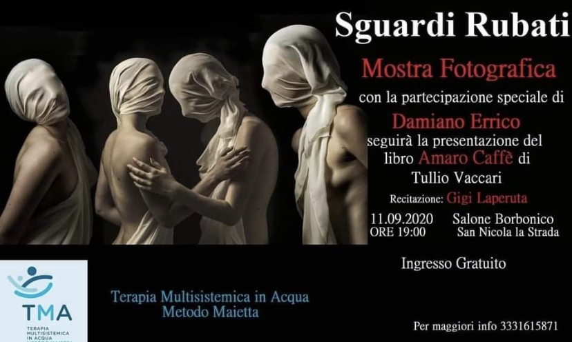 San Nicola la Strada-L’ 11 Settembre dalle ore 18:30 al Salone Borbonico di San Nicola la Strada ci sarà la Mostra Fotografica Sguardi Rubati, organizzata da Tullio Vaccari (attualmente consigliere di SNLS) con la Partecipazione speciale di Damiano Errico. Inoltre ci sarà la presenza del Dott. Maietta che parlerà e illustrerà una nuova Terapia rivolta ai bambini con lo spettro autistico (TMA Terapia Multisistemica in Acqua).