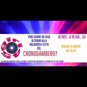 , che ha presentato il suo ultimo lavoro “Aglio, olio e Assassino”, venerdì 15 giugno 2018, alle ore 20,30, ha organizzato l’evento dal titolo “Cronogambero”