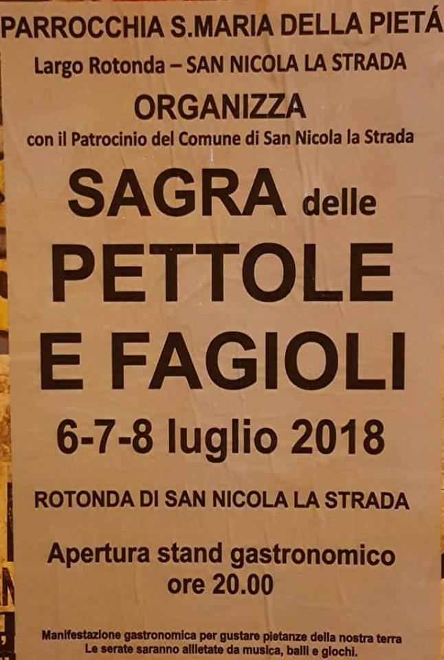 SAN NICOLA LA STRADA – Con l’arrivo della bella stagione, nelle diverse aree a verde presenti in città ed anche nelle “corti” dei numerosi casali presenti nel centro storico cittadino, si organizzano sagre, fiere, manifestazioni culturali. Anche quest’anno, l’Associazione Volontari “La Rotonda – Maria SS. della Pietà”