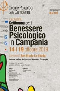 Il tema al centro di questa X^ edizione è: “Nessuno escluso. Inclusione e Benessere Psicologico” e si terrà Sabato 19 ottobre 2019, con inizio alle ore 19:00, presso il Salone delle Conferenze del Real Convitto Borbonico di San Nicola la Strada. Dopo i saluti del sindaco Vito MAROTTA e della Presidente dell’Ordine dei Psicologi Antonella BOZZAOTRA, sono previsti gli interventi di Alessia TISCIONE, consigliera comunale delegata alle Politiche Europee, e dell’Assessore alle Politiche Sociali, Lucio BERNARDO. A seguire le relazioni di Clementina IOELE, psicologa.