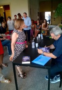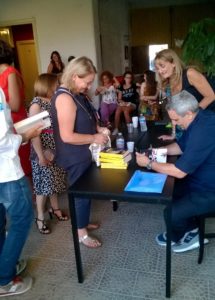 . Chissà se, nel 2005, avrebbe mai immaginato che quel racconto scritto per gioco a un concorso riservato a giallisti emergenti gli avrebbe portato tanta fortuna. Da una casualità inizia la carriera di questo bravissimo scrittore di polizieschi, oggi uno dei giallisti più apprezzati d’Italia. Nei suoi romanzi, ambientati nella Napoli dei vicoli, si muovono personaggi che palpitano di vita vera. Come i Bastardi di Pizzofalcone – poliziotti maledetti e sgangherati nella Napoli di oggi, approdati alla tv in una serie per Raiuno, con Alessandro Gassman nei panni del loro capo, l’ispettore Lojacono. E poi c’è la serie dei Guardiani: un ciclo di romanzi con protagonista non più un poliziotto ma un professore di antropologia, Marco Di Giacomo, alle prese con la misteriosa Napoli del sottosuolo. E c’è anche la storia di Sara al tramonto, in cui al centro della scena c’è una poliziotta in pensione. Al termine del salotto letterario i presenti hanno degustato i piatti del 54enne chef Claudio Russo, sommelier dell’AIS (terzo livello con esame finale), degustatore di birre dell’ADB e assaggiatore di formaggi ONAF (primo livello). Ha partecipato a diverse trasmissioni televisive tra cui “Cuochi e Fiamme” alla 7d e “Questo l’ho fatto io “ su Gambero Rosso tv di Sky e a diversi cooking show e competizioni enogastronomiche nella mia città come “O’ Maste’ re Chef ” 2013, vincitore di “Chef+Chef” 2014 e chef al “Galà Dinner di Beneficenza” nel 2015 per i 60 anni dell’AIRC, tutte manifestazioni con giurie tecniche e commensali.