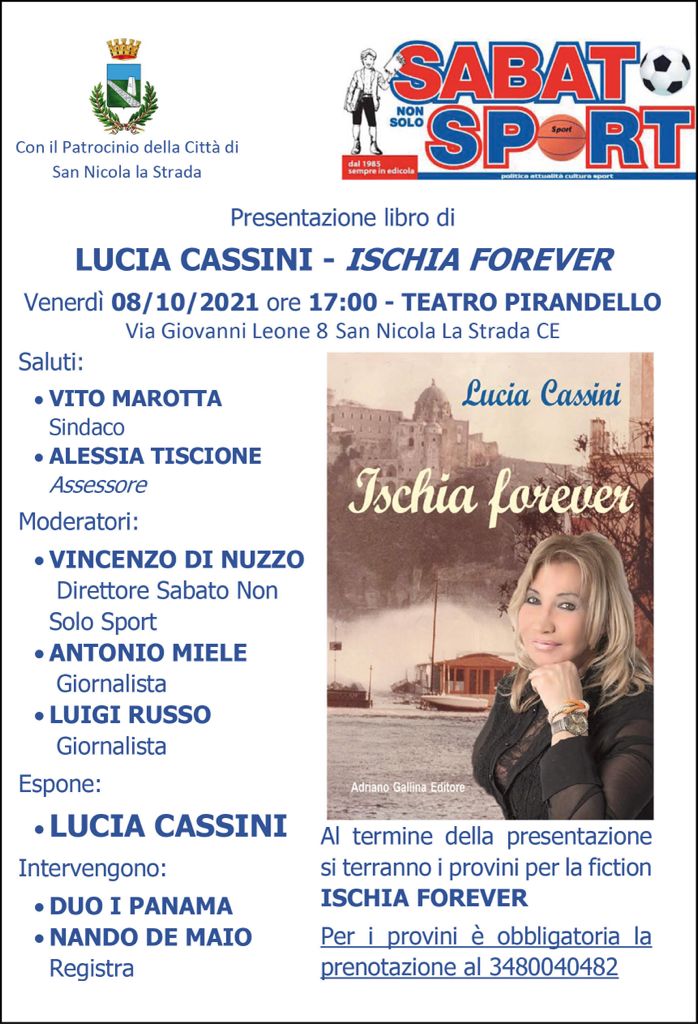 Ischia forever. Questo il titolo del libro di Lucia Cassini, tributo alla celeberrima isola del Golfo di Napoli, che verrà presentato venerdì 8 ottobre alle ore 17 presso il Teatro Pirandello di San Nicola La Strada.