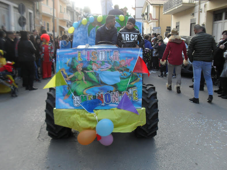 Un carro allegorico ispirato alle vicende di Peter Pan ha sfilato nel pomeriggio per le vie del paese, per una successiva sosta in piazza Cardella e la definitiva collocazione nella palestra di via Cimarosa, sede dell’associazione Diversamente Insieme.