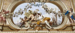 La Reggia di Caserta ha scelto come immagine simbolo del San Valentino 2020 l’affresco “L’incontro di Bacco e Arianna” per onorare l’amore nella sua accezione più ampia: come sentimento, moto dell’anima, impeto ma anche trepidazione. L’opera, che si può ammirare nella Sala dell’Autunno degli Appartamenti storici, fu dipinta dal pittore palermitano Antonio de Dominicis. Nel medaglione centrale, accoglie la scena dell’incontro tra Bacco, dio del vino, ed Arianna, figlia del re di Creta.