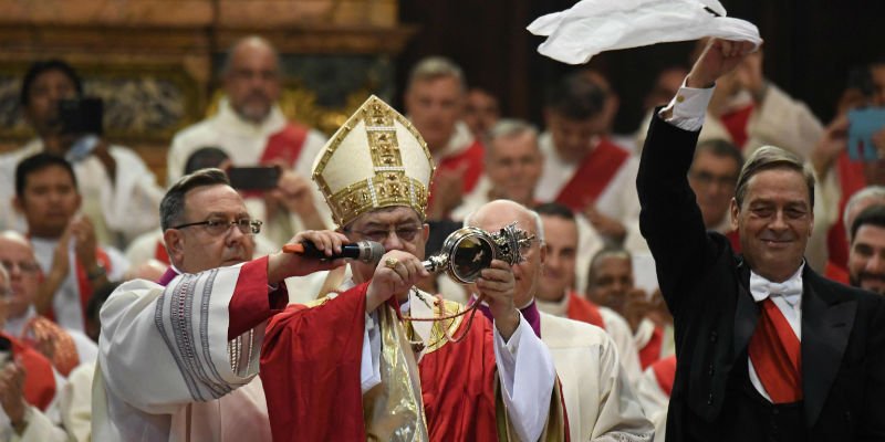 Si rinnova il rito della liquefazione del sangue che secondo la tradizione fu raccolto dal corpo del patrono della città dopo il suo martirio. Come di consueto, al termine di una messa Sepe ha estratto l’ampolla che contiene il sangue da una nicchia della reale cappella del Tesoro di San Gennaro, nel Duomo di Napoli, e l’ha mostrata ai fedeli. L’arcivescovo non ha però potuto portare l’ampolla all’esterno del Duomo come vorrebbe la parte finale del rito, a causa di un lieve malore avuto durante la messa. il miracolo del sangue di San Gennaro, anche questo 19 settembre, alle ore 10.08, si è sciolto nonostante questa postilla poco allegra.