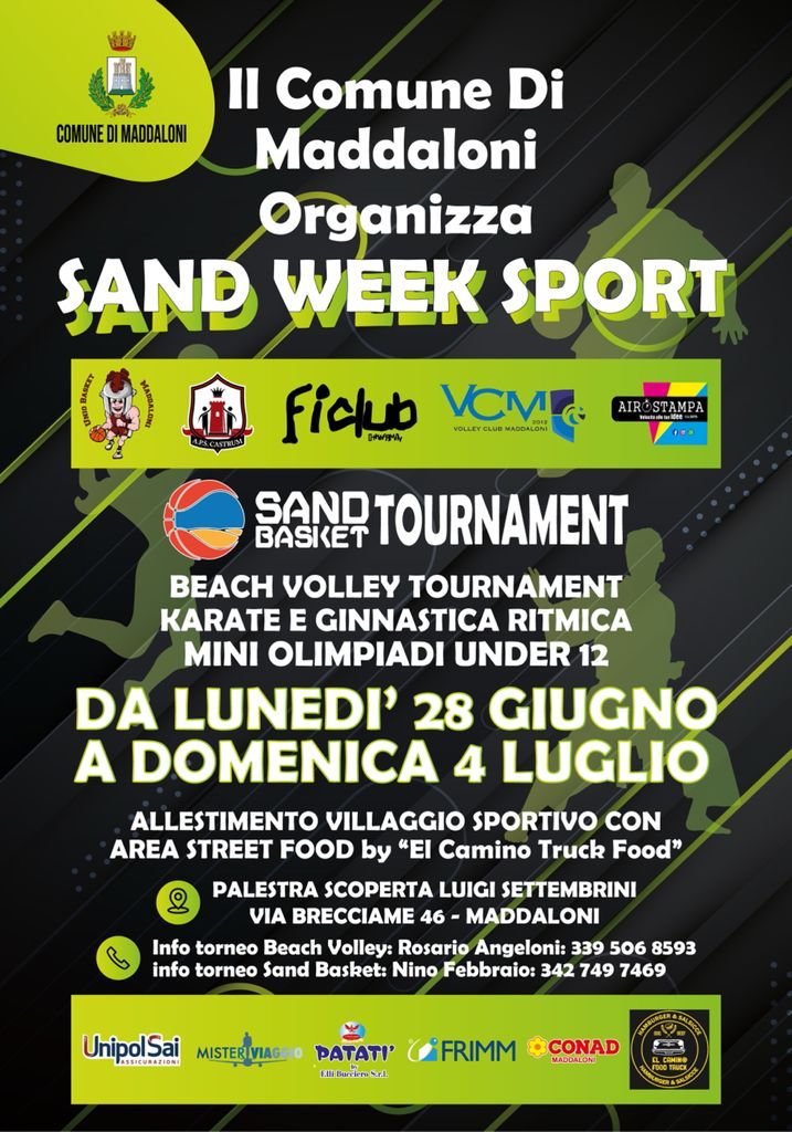 Maddaloni. Il comune di Maddaloni porta la spiaggia in città. Sand week sport, l’iniziativa che prevede una serie di tornei sportivi, appunto, on the beach, si svolgerà dal 28 giugno al 4 luglio nella palestra scoperta dell’istituto “Settembrini” di via Brecciame.