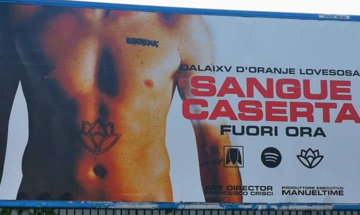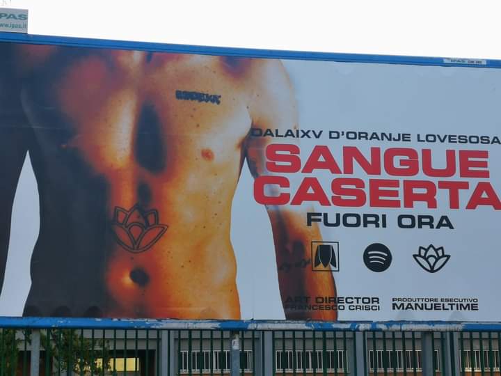 Un nuovo manifesto appare in città.: esso ritae un giovane a petto nudo con volto nascosto con un fiore di loto tatuato ed accanto viene declamato l’uscita di un singolo musicale disponibile da oggi sulla piattaforme digitali Spotify dal titolo Sangue Caserta.