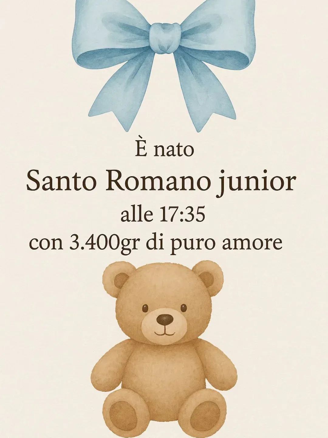 Nel pomeriggio di oggi 18 novembre 2025 è nato Santo Romano Junior, il figlio del fratello Tony del ragazzo di 19 anni che giusto un anno fa fu brutalmente ucciso da un diciassettenne per una scarpa sporcata accidentalmente da un amico del Romano.